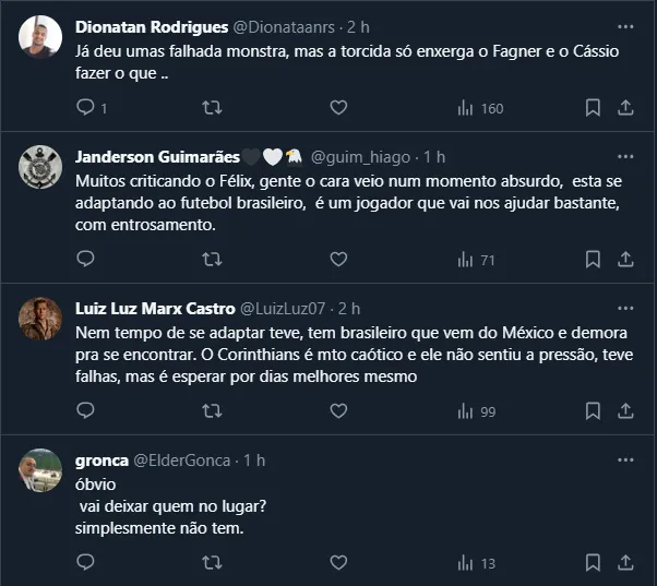Só para se ter ideia, o zagueiro Félix Torres chegou ao Timão neste início de temporada e já assumiu o posto de titular. Inclusive, ele atuou em todos os minutos do Corinthians em 2024 até aqui.