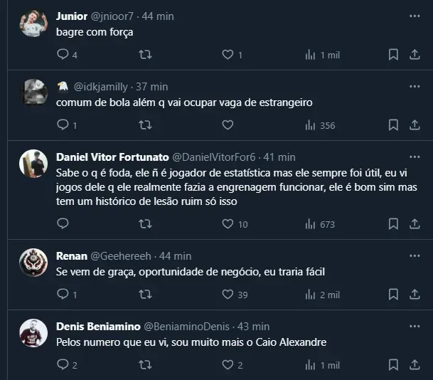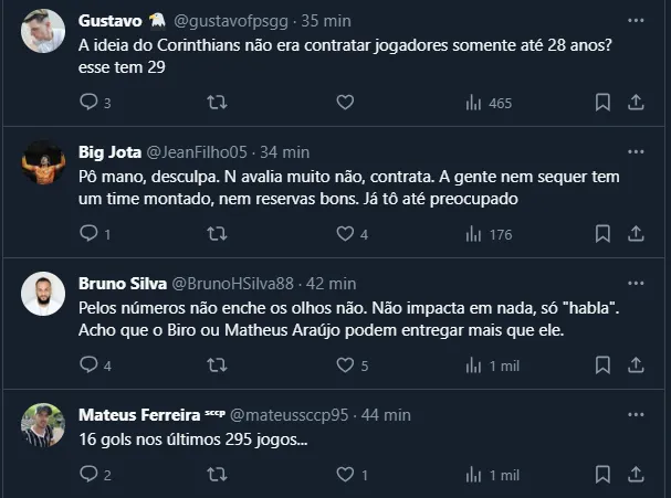 Por fim, com o vazamento do nome na imprensa, a torcida do Corinthians resolveu se manifestar e se dividiu sobre a possível contratação, até pela necessidade do elenco estar em outras posições.