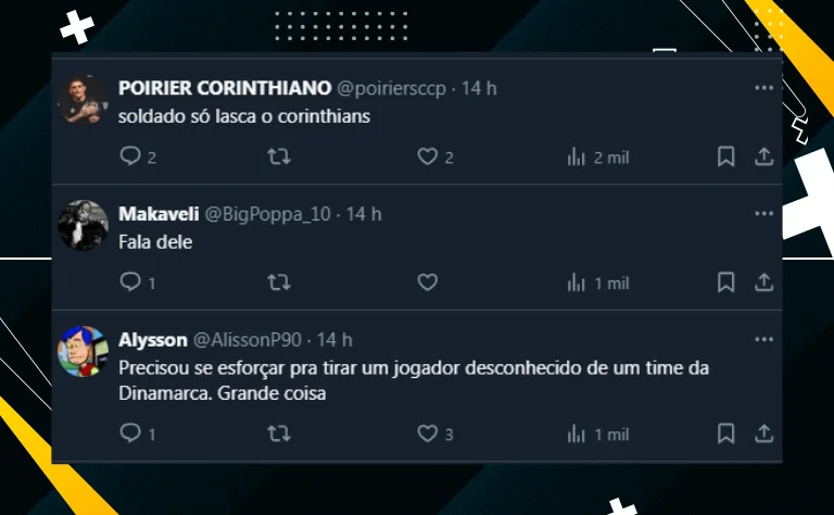 O Alvinegro do Parque São Jorge não vai parar por aí e já encaminhou o acerto com o volante Charles, Midtjylland, da Dinamarca. No entanto, a contratação dividiu opiniões a respeito de Fabinho Soldado, executivo de futebol do Corinthians.