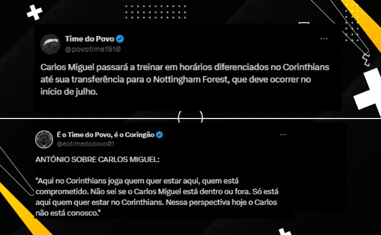 Carlos Miguel, que foi aprovado pelo DM do Nottingham, já havia conversado com a diretoria do Corinthians sobre sua situação e tinha um acordo para continuar jogando com a camisa do clube alvinegro.