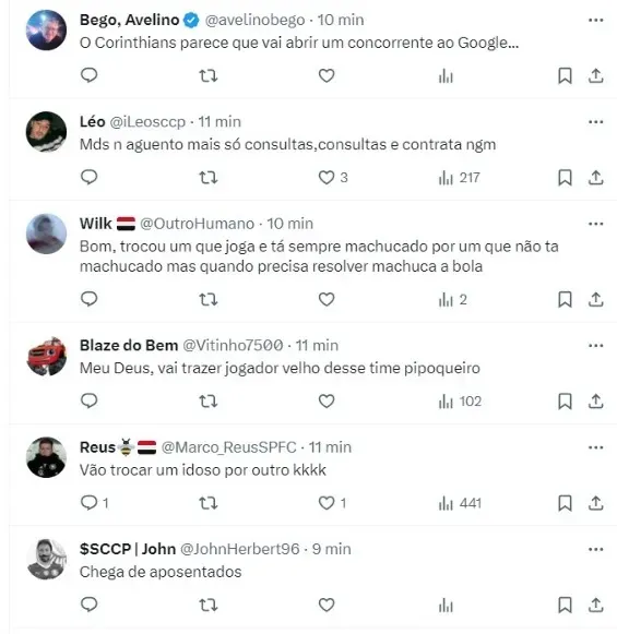 Segundo o jornalista, o clube alvinegro está no mercado em busca de um nome para o substituir Renato Augusto, que não teve o seu contrato com o Timão e deve acertar com o Fluminense.