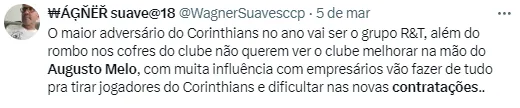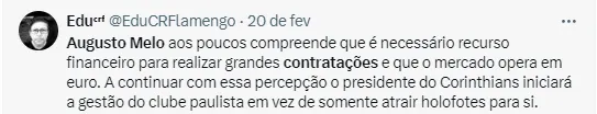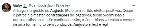 De acordo com o UOL Esporte, o entendimento interno é que o Timão teve uma boa atuação no mercado da bola até aqui. Melo está satisfeito com as contratações feitas.