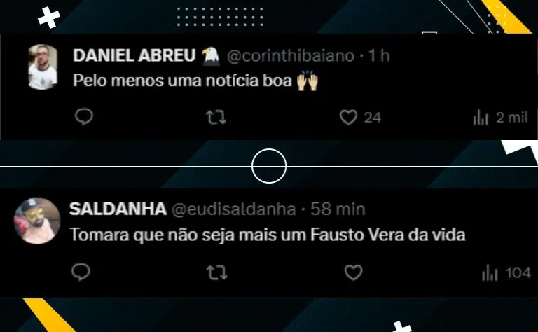 Até o momento, o Timão trouxe, na atual janela de transferências, o goleiro Hugo Souza, o zagueiro André Ramalho e o volante Alex Santana, além do meio-campista Charles.