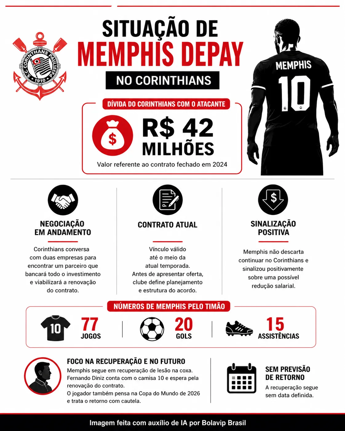 Devido ao vínculo fechado em 2024, o Sport Club Corinthians Paulista deve R$ 42 milhões ao atacante holandês. A equipe ainda não sinalizou quando iniciará o pagamento do valor.