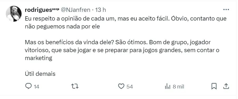 O jornalista explicou em seu canal no Youtube a situação do atacante no Rubro-Negro e disse que o Timão é um dos times que acompanha de perto o jogador. A ideia da diretoria corinthiana é tentar fechar com o atleta em julho e, dessa forma, ele se apresentaria ao Alvinegro em 2025.