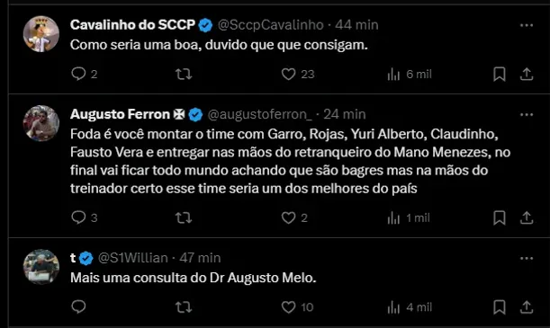 Entretanto, isso não aconteceu, o jogador não ficou no banco de reservas, permaneceu em um camarote da arena. A situação continua indefinida, com os torcedores do Timão querendo ver o atleta em campo.