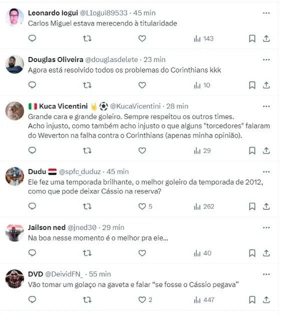 A informação foi divulgada pelo jornalista André Hernan, da UOL. Segundo a reportagem, Cássio deverá ficar no banco de reservas contra o Fluminense, dando o lugar a Carlos Miguel.