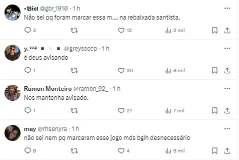Os Clubes emitiram uma nota oficial: “Nesta sexta-feira (22/03), Santos e Corinthians fariam um jogo-treino, na Vila Belmiro, porém, a atividade foi cancelada. A delegação corinthiana ficou presa na Via Anchieta por conta de um grave acidente que bloqueou a passagem na rodovia e inviabilizou a descida da serra”.