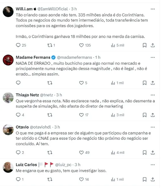 Além disso, Rubens Gomes, ex-diretor de futebol do Timão, que foi demitido do cargo na última semana, apontar que teria ouvido do presidente do Corinthians que não houve intermédios na negociação.