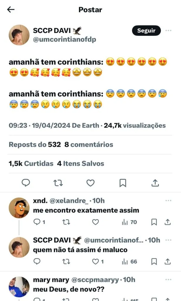 Neste sábado (20), o Corinthians entra em campo pela 3ª rodada do Brasileirão 2024. O time viaja até Bragança Paulista para enfrentar o RB Bragantino, às 18h30, e busca sua primeira vitória na competição.
