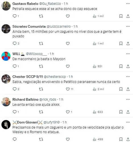 Mas, as conversas sofreram uma reviravolta brusca e, de acordo com informação do jornalista Bruno Andrade, Cacá não será atleta do Corinthians. Com o fracasso das negociações, o jornalista também expôs a postura do Clube sobre a zaga.