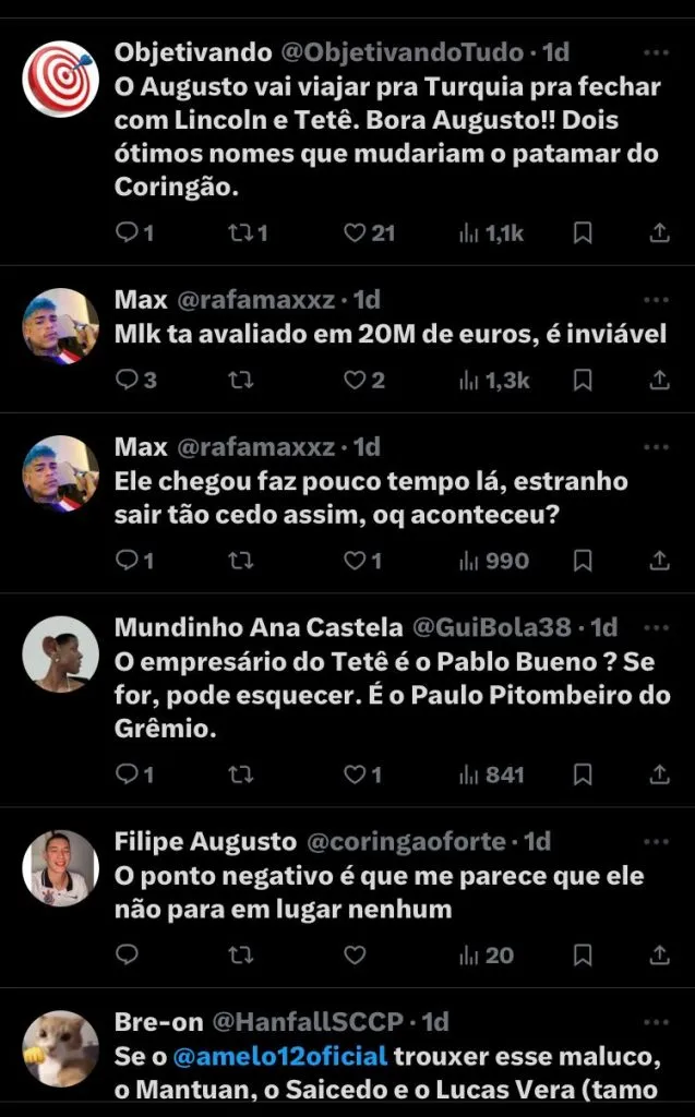 No post, tinha um trecho final enigmático, dias depois de o presidente alvinegro, Augusto Melo, tratar com surpresa a escolha do jogador em rumar ao futebol do Catar e dizer “maldito homem que confia no homem”.