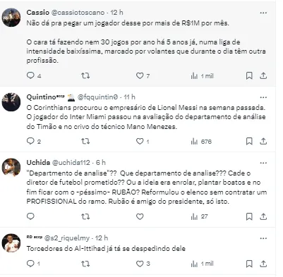 “Depois desta procura, porém, não houve mais nenhum movimento, pois não se sabe se o jogador conseguirá a rescisão amigável com o clube da Arábia Saudita e ficará livre no mercado. Um problema é o alto salário do jogador, hoje por volta de R$ 2 milhões por mês”, completou.