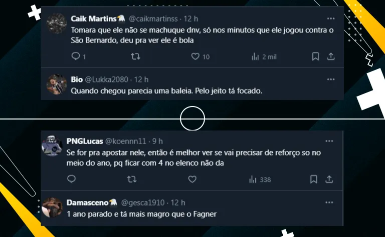 Por fim, por mais que o jogador tenha treinado normalmente, sua aparição nos treinamentos causou certa divisão na torcida alvinegra. Enquanto uns se empolgaram, outros ligaram o alerta: