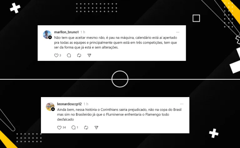 Com isso, o Fla enfrentaria o Fluminense na quarta-feira (16), no Maracanã, e o Timão jogaria contra o Athletico, no mesmo dia, em sua arena. Mas o Alvinegro não aceita essa ideia de Landim.