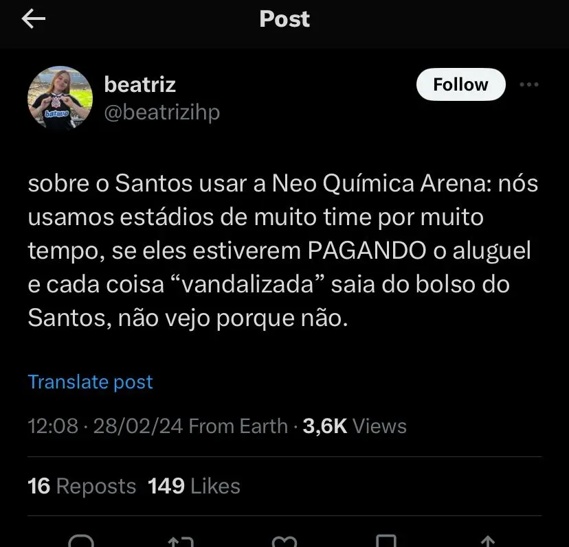 Por outro lado, a equipe do Parque São Jorge não tem intenção de mandar seus jogos na Vila Belmiro, mas a boa relação entre as diretoria pode fazer com que um acordo que fique bom para os dois lados seja acertado.