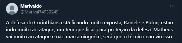“Se estivéssemos na zona de rebaixamento na primeira rodada estaríamos preocupados. Não acho que seja o fim do mundo, mas nós, pela dimensão do clube, ficamos desconfortáveis, porque não é o lugar do Corinthians. Vamos trabalhar e melhorar para brigar lá em cima. Dar uma resposta melhor ao torcedor”, finalizou.