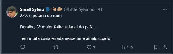 “Muito triste pelo momento que estamos vivendo. Não faltou dedicação e entrega, mas saímos com a derrota. Vamos trabalhar muito para sair deste momento ruim que o clube está vivendo”, disse o camisa 9.