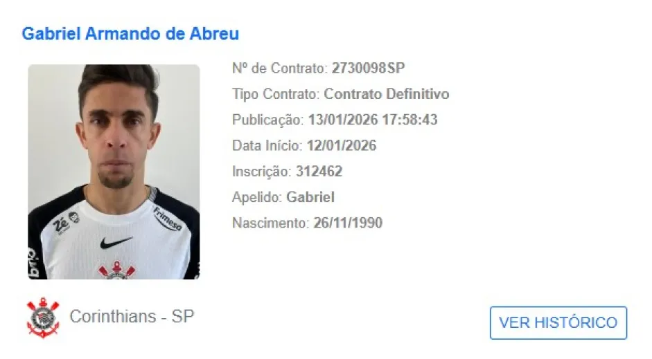 Gabriel Paulista está pronto para estrear pelo Corinthians. O zagueiro de 35 anos teve seu nome registrado no Boletim Informativo Diário (BID) da CBF nesta terça-feira (13), o que o libera para atuar pelo Timão.