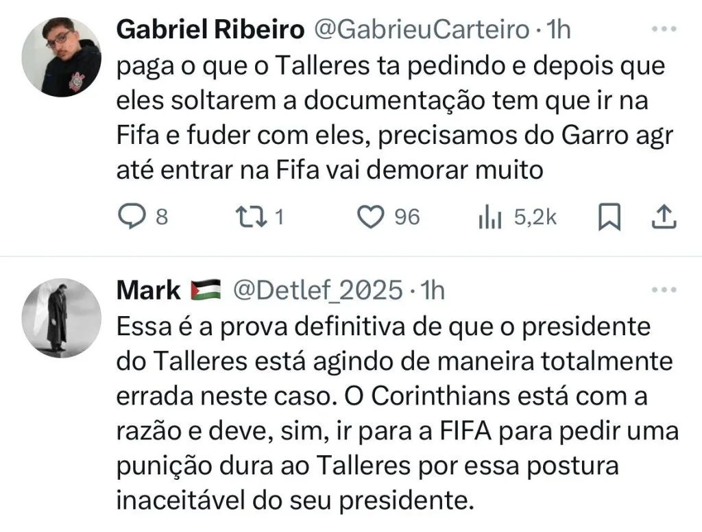 Porém, o que está pegando é que o presidente do Talleres quer que o Corinthians pague o valor líquido que gira em torno dos R$ 31 milhões somando os impostos. O Timão, por sua vez, alega que o acordo foi que o Clube arcasse apenas com o valor bruto.