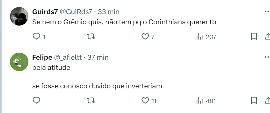 Um dos motivos do Timão recusar a proposta do Internacional pode ser a logística: o time de António Oliveira enfrenta três dias depois o Athletico Paranaense, na Ligga Arena, em Curitiba.
