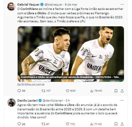 Um detalhe que pode ter pesado para a decisão da diretoria do Alvinegro do Parque São Jorge é que o Clube já tem em mãos uma proposta da Liga Forte Futebol (LFF). Ou seja, poderia assinar com o bloco rival.