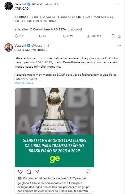 Por saber disso e do peso do Clube, que conta com uma das maiores torcidas do Brasil e consequentemente tem um alto engajamento nas mídias, o Timão quer conseguir fechar a proposta mais vantajosa, que traria um grande impacto financeiro para a equipe.