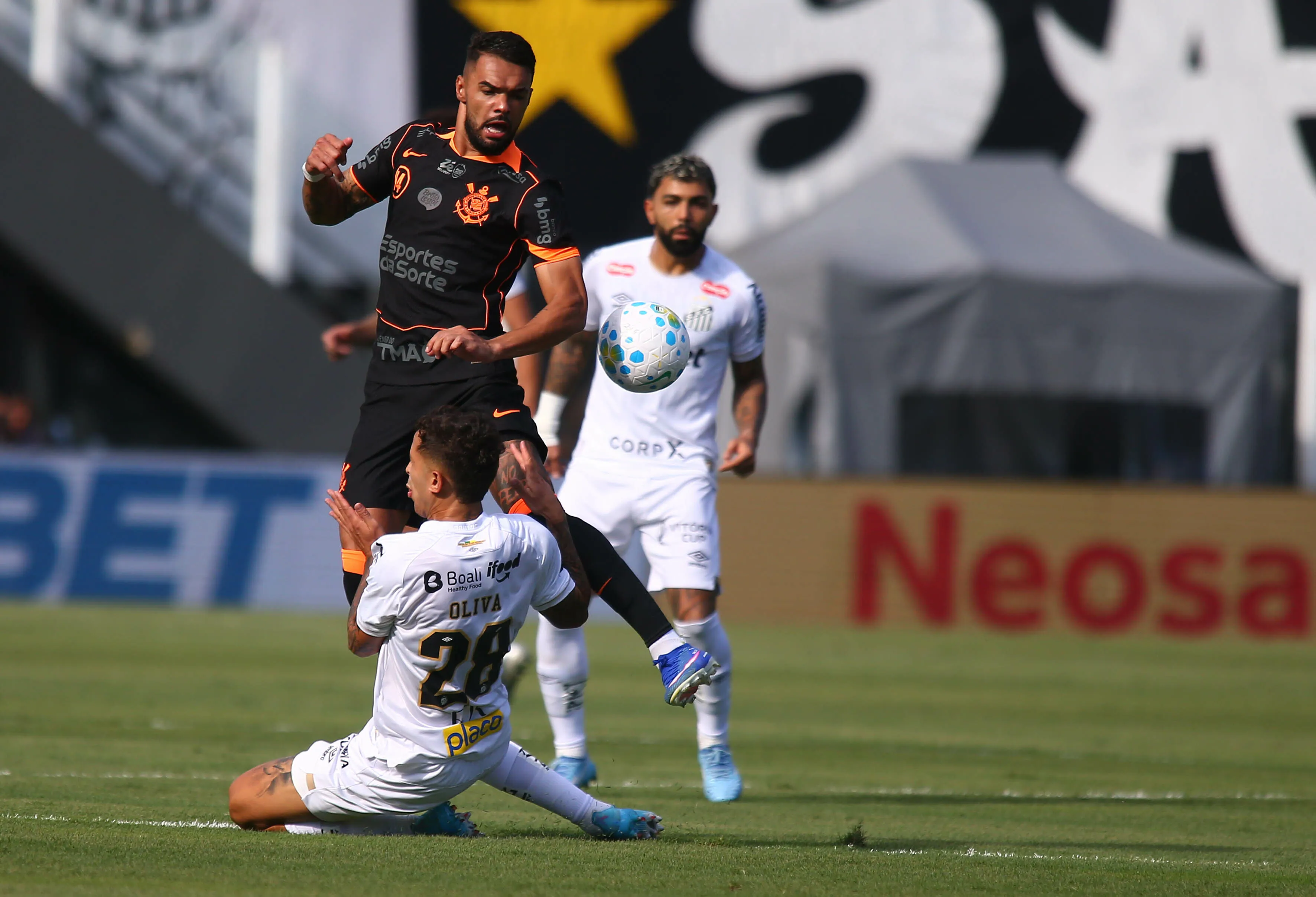 Gabriel Paulista comete erro bizarro na frente de Neymar e Gabigol aproveita em Santos x Corinthians