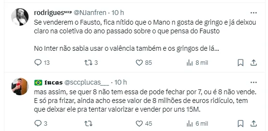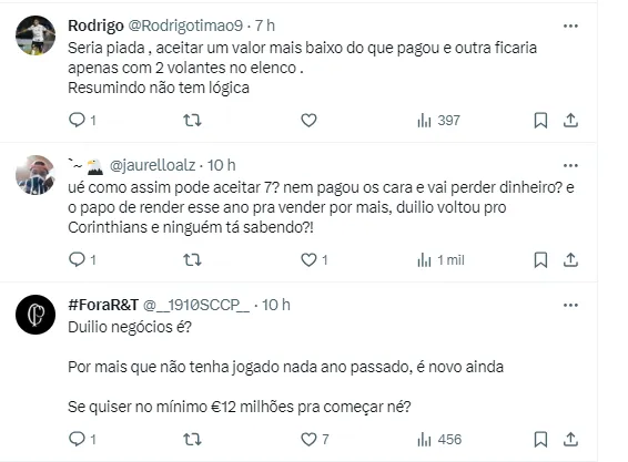 Ainda assim, a informação é que Augusto Melo e companhia topariam conversar em uma proposta no valor de 7 milhões de euros (R$37 milhões). Esse cenário poderia fazer uma eventual negociação acontecer.