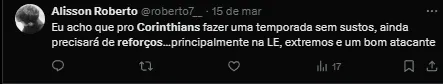 Caso, alguma contratação seja feita pelo Corinthians, se trataria de uma grande oportunidade de mercado, ou seja, um jogador que se destacou em algum campeonato estadual e poderia ser negociado por valores baixos, que não causasse tanto impacto para os cofres do Clube.