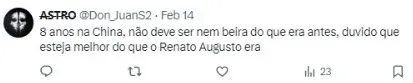 “O contrato com o clube chinês se encerra em dezembro de 2024, ou seja, a partir de janeiro de 2025, o Oscar deseja estar no Brasil, já sabendo que a realidade atual é bem diferente do que na China“, seguiu.