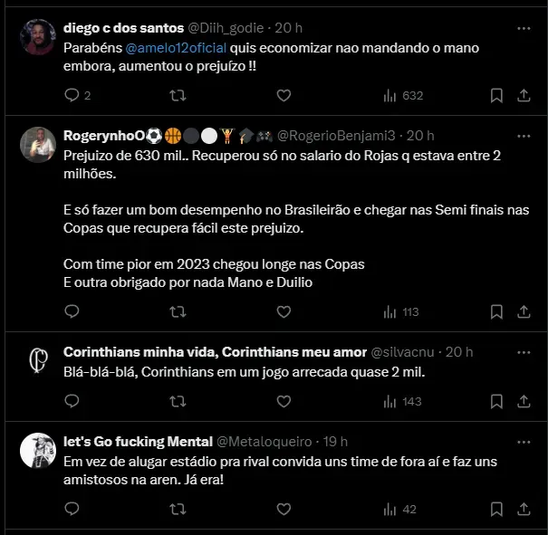 Em contrapartida, fora de campo, nos bastidores, Augusto Melo está trabalhando para resolver os problemas financeiros que a equipe possui. O mais recente caso envolvem Matías Rojas, que pediu a rescisão contratual.