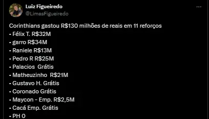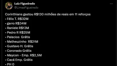 O Corinthians se reforçou para a temporada. A equipe passou por uma grande reformulação com a chegada de Augusto Melo. Muitos nomes deixaram o Parque São Jorge e outros chegaram.