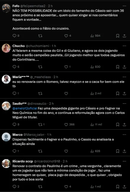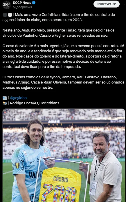 Agora, outro assunto que surgiu nos bastidores do Parque São Jorge ganhou evidência graças a uma matéria publicada no site Globo Esporte. A reportagem trouxe a informação de que dez jogadores do atual elenco tem contrato terminando neste ano.