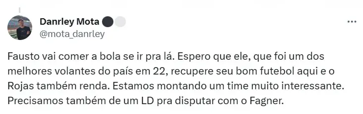 Em contrapartida, o Fla se interessa por Fausto Vera. O Timão, por sua vez, enxerga uma possibilidade de ‘vai-e-vem’, mas os cariocas não estão convencidos dos moldes do negócio e ainda analisam a situação.
