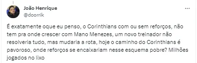 Esses resultados ruins no começo do Paulistão estão dando o que falar tanto dentro dos bastidores do Parque São Jorge, quanto na Fiel. Existem muitas repercussões na equipe sobre algumas possibilidades.