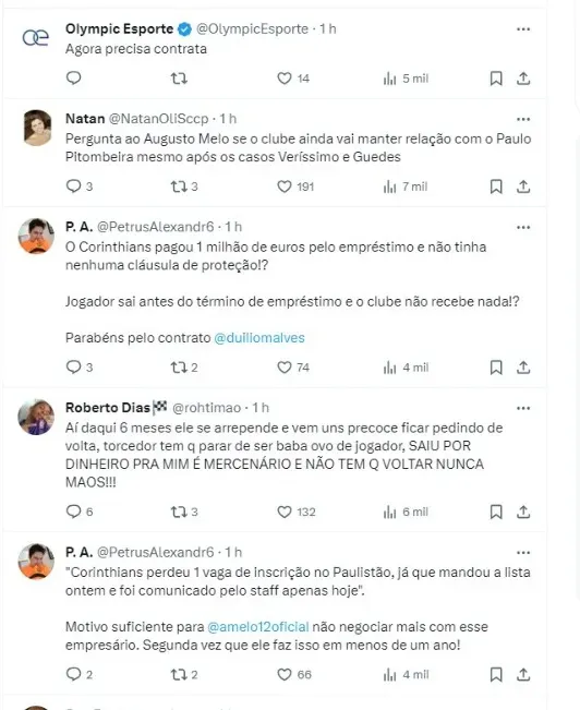 “Corinthians já está no mercado para repor Veríssimo. A ideia é trazer mais um, mesmo com a recente chegada de Gustavo Henrique“, escreveu o jornalista Rodrigo Vessoni no X.