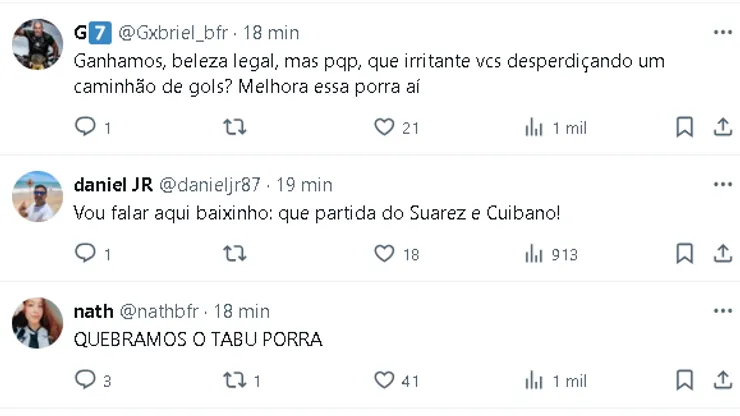 Com o resultado, o Corinthians foi empurrado para a zona de rebaixamento, ocupando a 17ª posição na tabela. O Botafogo, agora com 13 pontos, se iguala ao Athletico-PR e Bahia, mas leva vantagem no critério de gols marcados. Os dois adversários do Fogão entrarão em campo neste domingo.