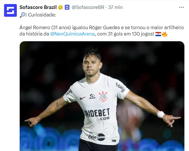 A noite era dele, e aos 32 do segundo tempo Romero fez o segundo dele na partida e o terceiro do Timão, escrevendo de vez seu nome na história do clube como o maior artilheiro estrangeiro do Corinthians.