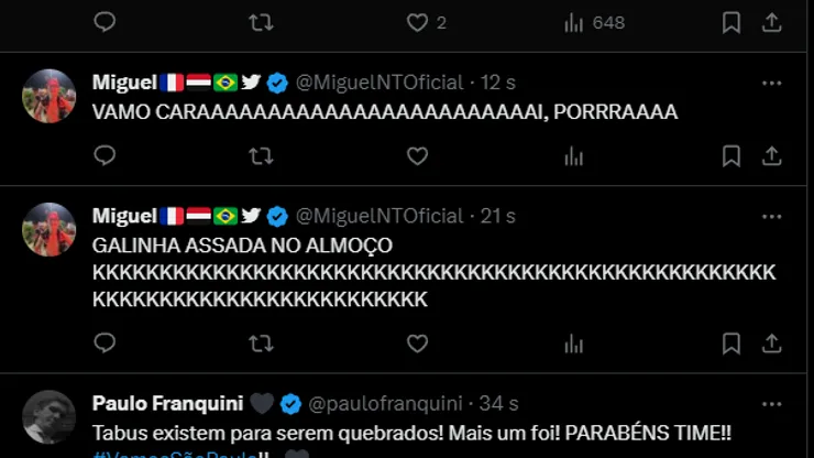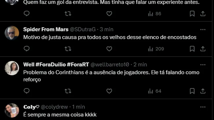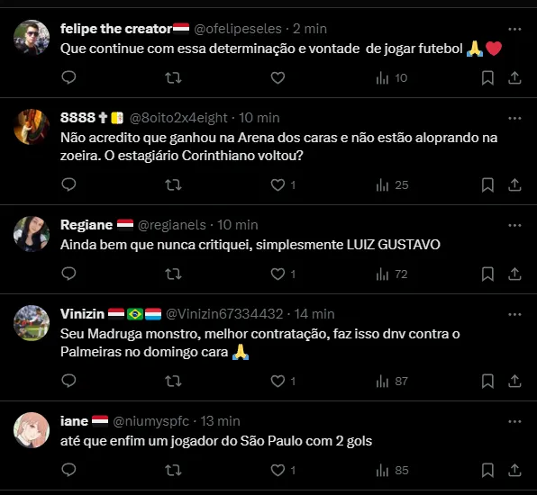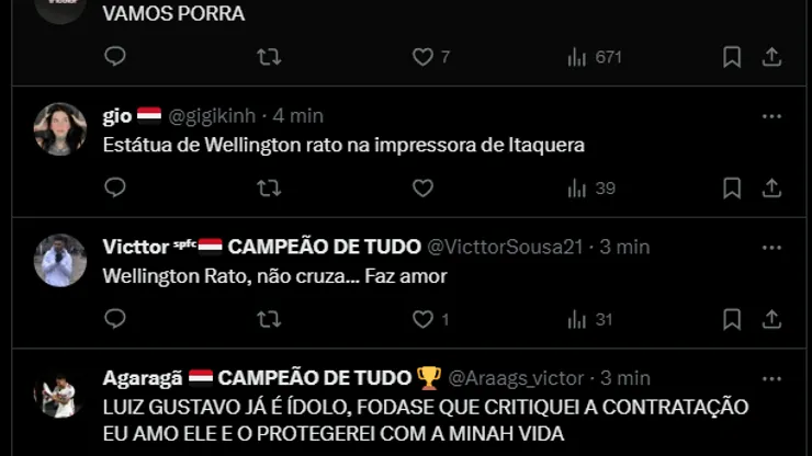 "Desde que estou aqui, faz tempo que a gente está eliminando o Corinthians, mais um tabu foi quebrado. Antes o tabu da Copa do Brasil, agora o da Arena do Corinthians. Vamos por mais. O jogo de hoje dá confiança para o final de semana".