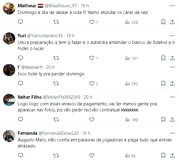 O Timão entra em campo ocupando a 15ª posição, com seis pontos conquistados até agora, enquanto o São Paulo está em quinto lugar, com 14 pontos. Na última rodada, o Corinthians empatou com o Atlético-GO por 2 a 2, e o Tricolor ficou no 0 a 0 contra o Internacional.