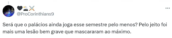 Se recuperando de uma artroscopia no joelho, Palácios ainda não reúne condições para atuar. Seu compatriota, Félix Torres, serviu a seleção equatoriana na Data Fifa e deve ser preservado.