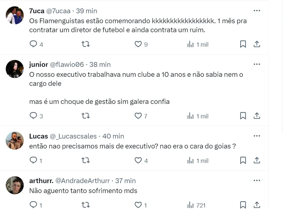 O dirigente corinthiano chegou a negociar com Rodrigo Caetano, mas o profissional não quis deixar o Atlético-MG. Fabinho Soldado estava na função de gerente de futebol do Fla desde agosto de 2021.