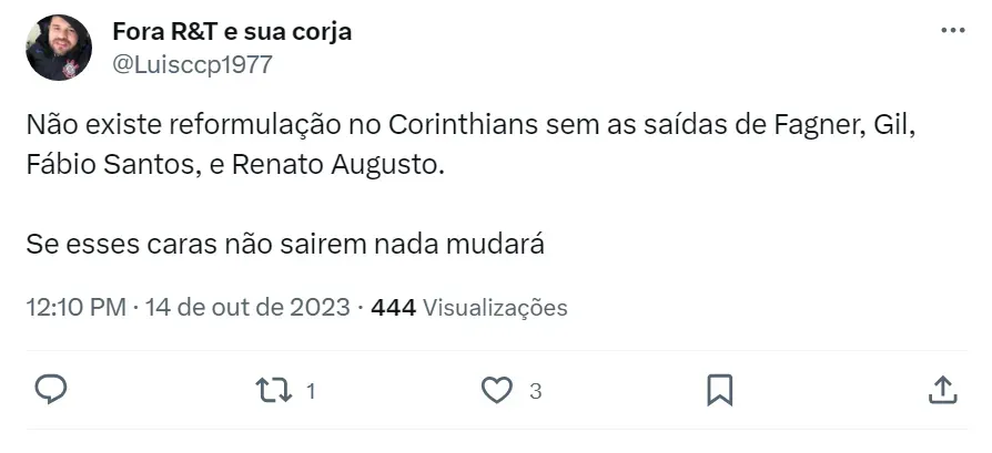 Com uma temporada ruim, o Corinthians contratou Mano Menezes para o lugar de Vanderlei Luxemburgo e o treinador corintiano tem carta branca para reformular o elenco para 2024. Vale lembrar também que, em novembro, acontece eleição para presidente no Alvinegro do Parque São Jorge e Duílio Monteiro Alves não será candidato. Ou seja, terá mudança na gestão para o ano que vem.