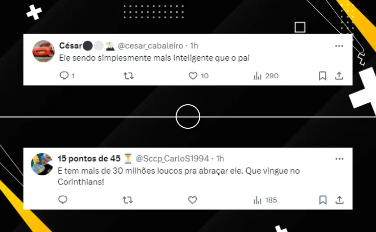 O jovem já mostra que é corinthiano, e que lutará por essa camisa. Seu pai, Flávio, disse: “Essa foi uma decisão total dele. A gente quer o melhor para o nosso filho e ele está muito feliz em permanecer no Corinthians. Temos agora de dar todo carinho para que ele possa se divertir e jogar bola, que é o que ele mais ama fazer. É uma criança que está realizando seu sonho”.