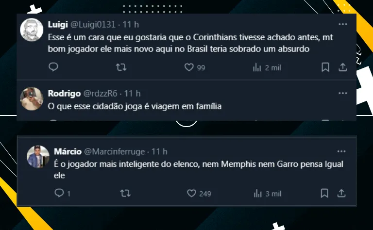 Por fim, de olho na classificação às semifinais do estadual, o próximo compromisso do Coringão será no domingo (2), às 18h30, contra o Mirassol. O duelo será realizado na Neo Química Arena. Veja a repercussão envolvendo Carrillo:
