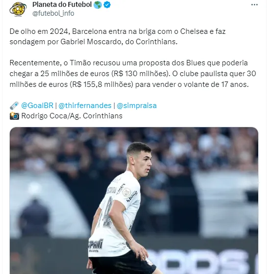 Inclusive, Gigantes Europeus já estão de olho nele. É sabido que o Chelsea, da Inglaterra, ofereceu 25 milhões de euros (R$ 132,7 milhões), mas o presidente Duílio Monteiro Alves recusou. O Corinthians só deve vendê-lo por mais de R$ 160 milhões que foi o valor que o Timão pretendia receber, segundo o UOL Esporte. No entanto, o Barcelona, da Espanha, também entrou em contato com o Timão, mas por incrível que pareça, acabou não realizando nenhuma proposta pelo camisa 44.