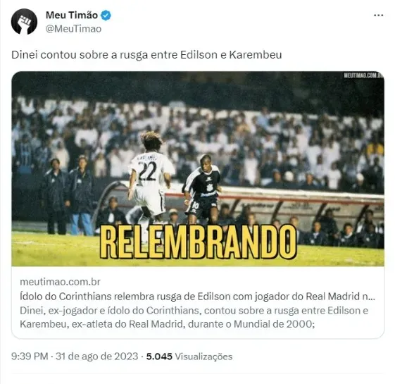 Nesta sexta-feira (31), o Timão enfrenta o time de lendas do Real Madrid, da Espanha. O jogo festivo acontece na Neo Química Arena, pelo aniversário de 113 anos do Timão. O duelo também é em referência à conquista do Mundial de 2000. A lembrança trouxe à tona a rusga entre Edilson e Karembeu, ex-atleta e jogador da equipe espanhola.