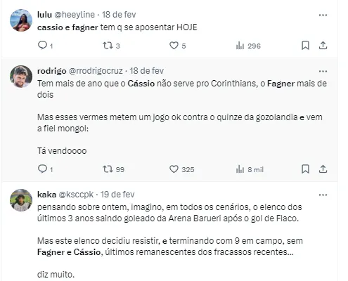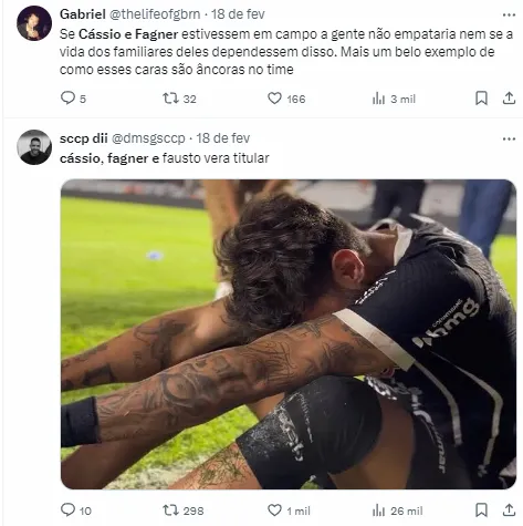 O goleiro Cássio e o lateral-direito Fagner são dois jogadores que vêm sendo muito contestados pela Fiel neste começo de temporada. Os dois medalhões do Corinthians que têm vários títulos conquistados na equipe estão sendo cobrados.