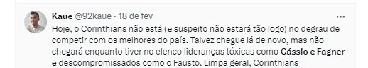 Para se ter ideia, tanto Fagner, quanto Cássio, recebem mensalmente no Timão o salário de R$ 1,2 milhão, de acordo com Jorge Nicola. Porém, esse alto valor que pode impressionar tem outro fator que atrapalha.